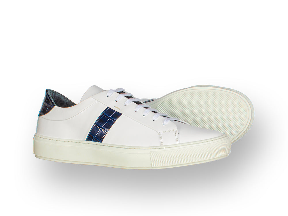 Sneaker da uomo in pelle vitello bianco coccodrillo blu
