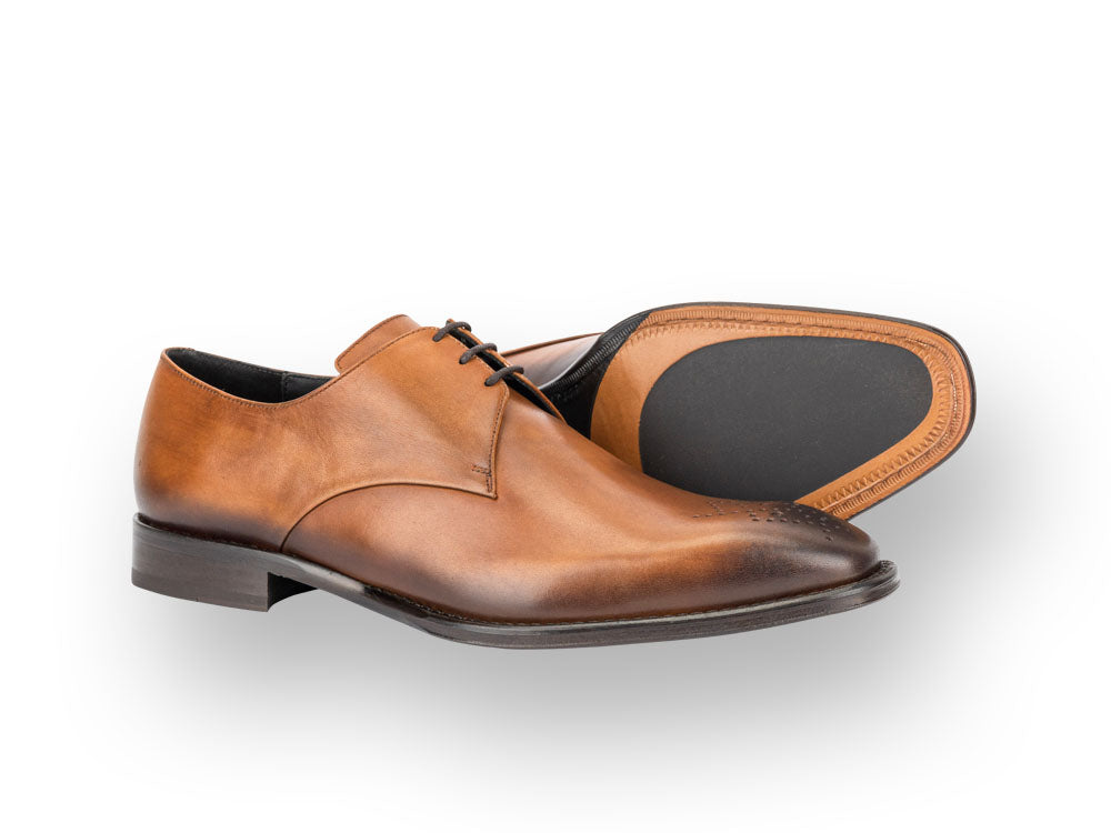 Scarpa stringata con allacciatura aperta che ne facilita la calzata, in quanto le due alette dell'allacciatura si aprono sui lati. I dettagli decorativi traforati sulla punta donano a questo modello un accento più ricercato.
