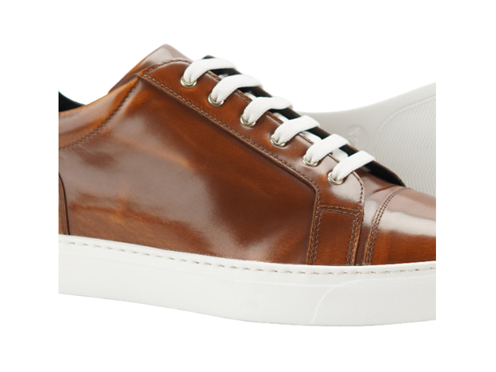 Sneaker da uomo in pelle abrasivato marrone chiaro