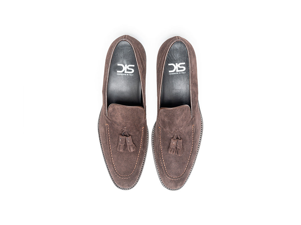 Coffee suede leather men tassel loafer