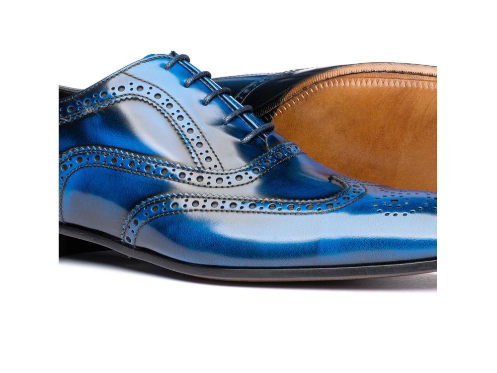 Blue polished leather men oxford wing brogue